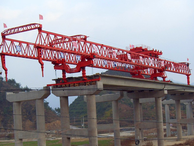 架桥机就是将预制好的梁片放置到预制好的桥墩上去的设备。架桥机属于起重机范畴,因为其主要功能是将梁片提起,然后运送到位置后放下。但其与一般意义上的起重机有很大的不同。其要求的条件苛刻,并且存在梁片上